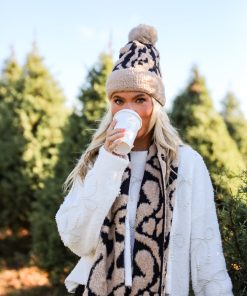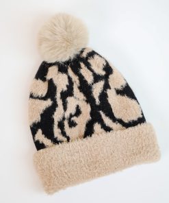 Fierce And Cozy Beige Leopard Pom Pom Beanie