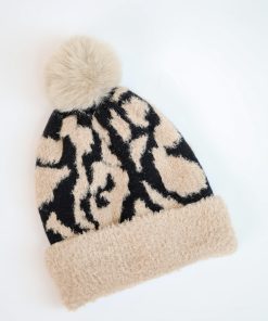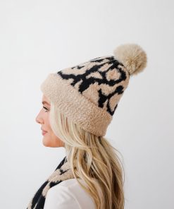 Fierce And Cozy Beige Leopard Pom Pom Beanie